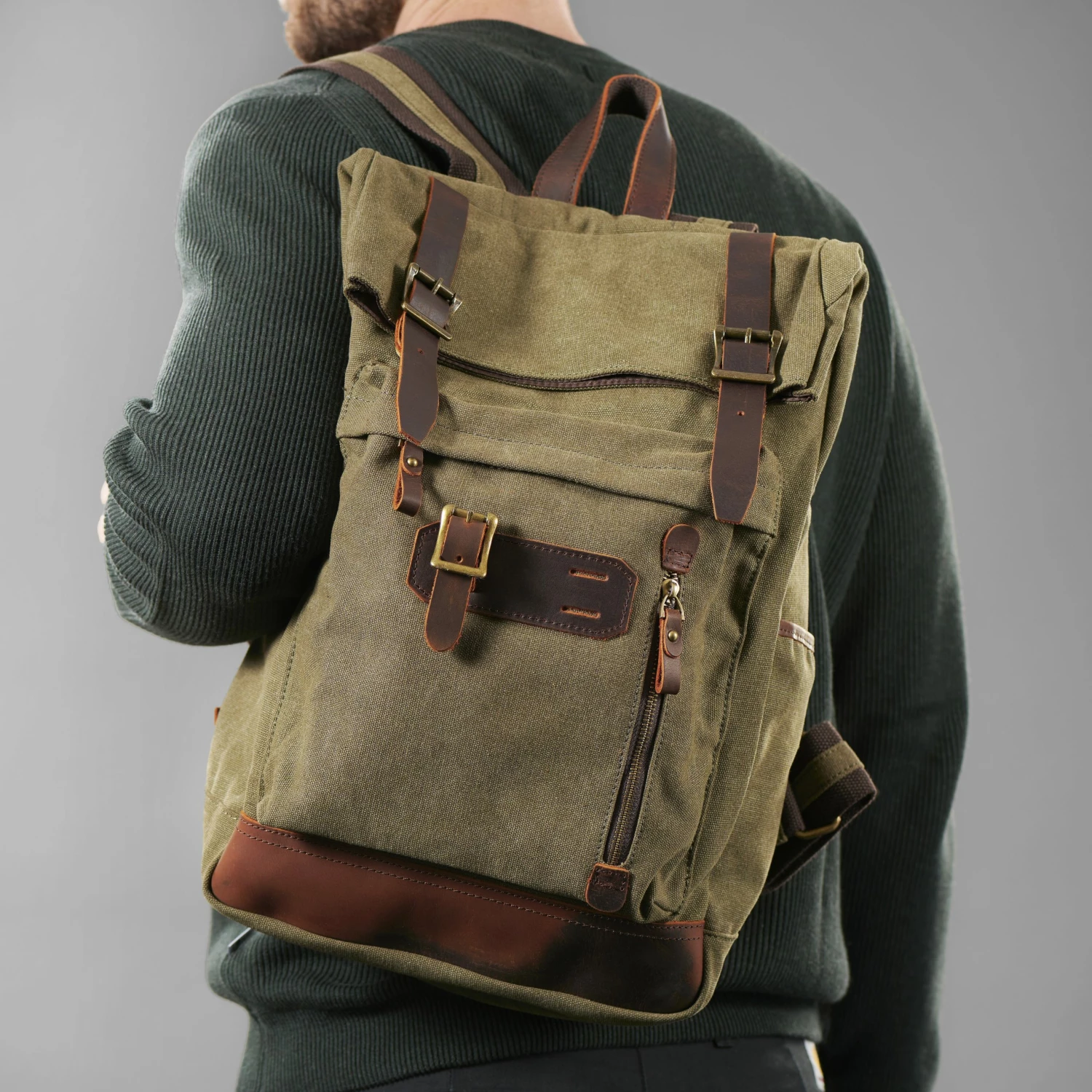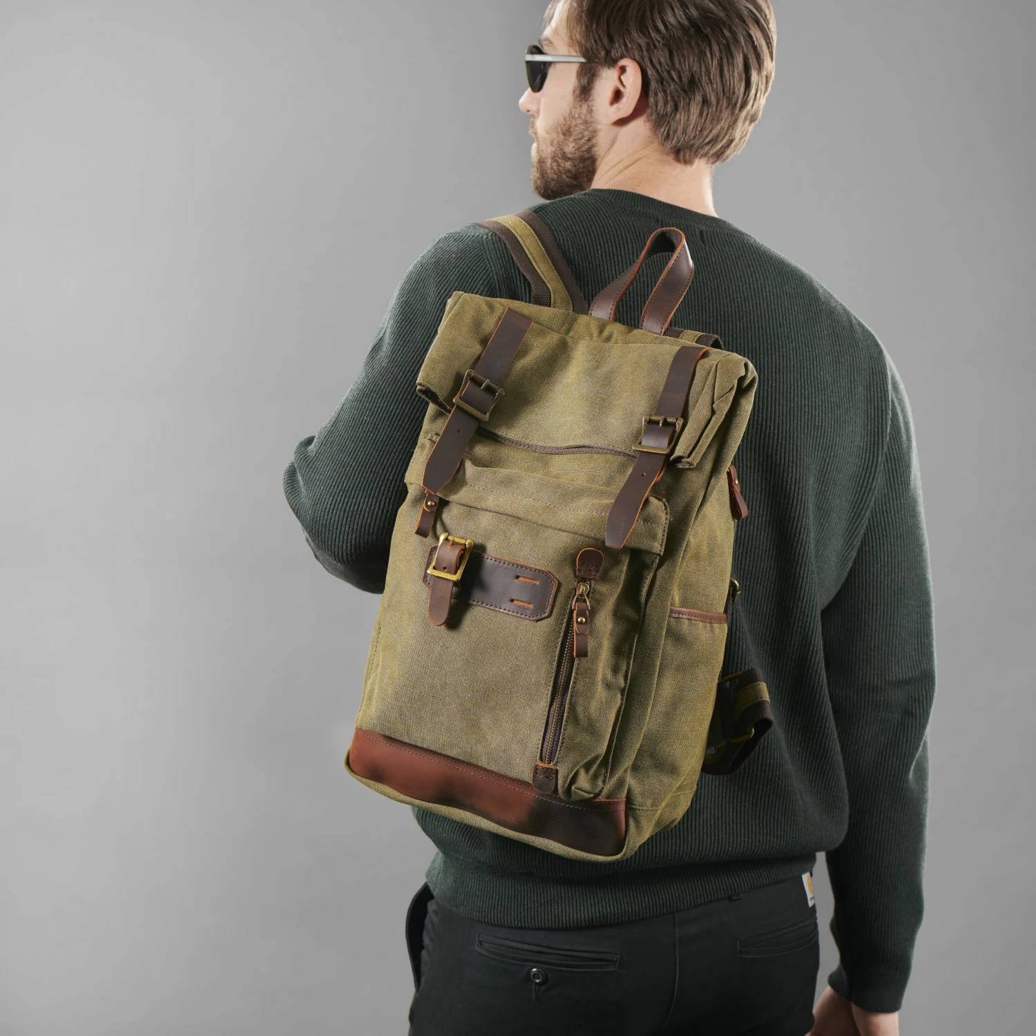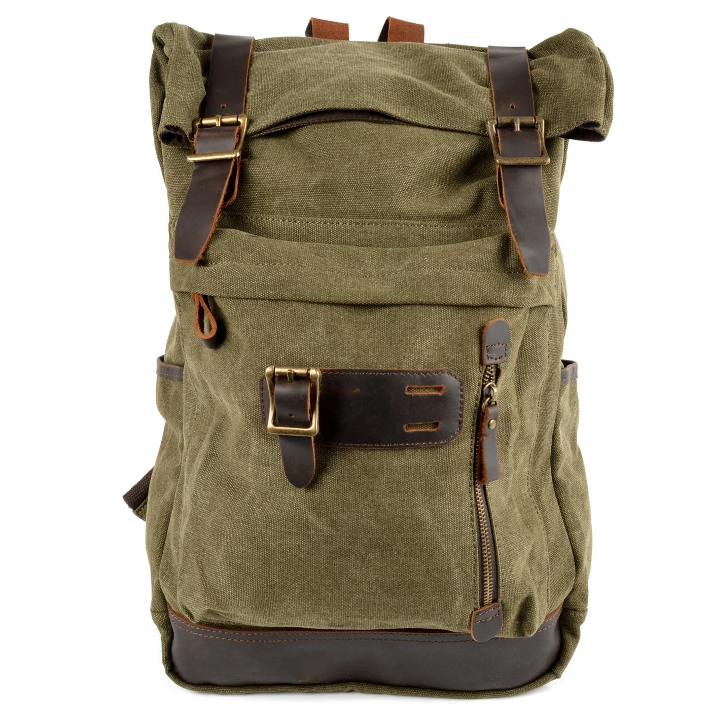 Un sac qui sort de l’ordinaire fabriqué en toile de couleur vert militaire. Ce type de toile, utilisée pour construire les voiles de bateaux, est très épaisse et extrêmement résistante.
