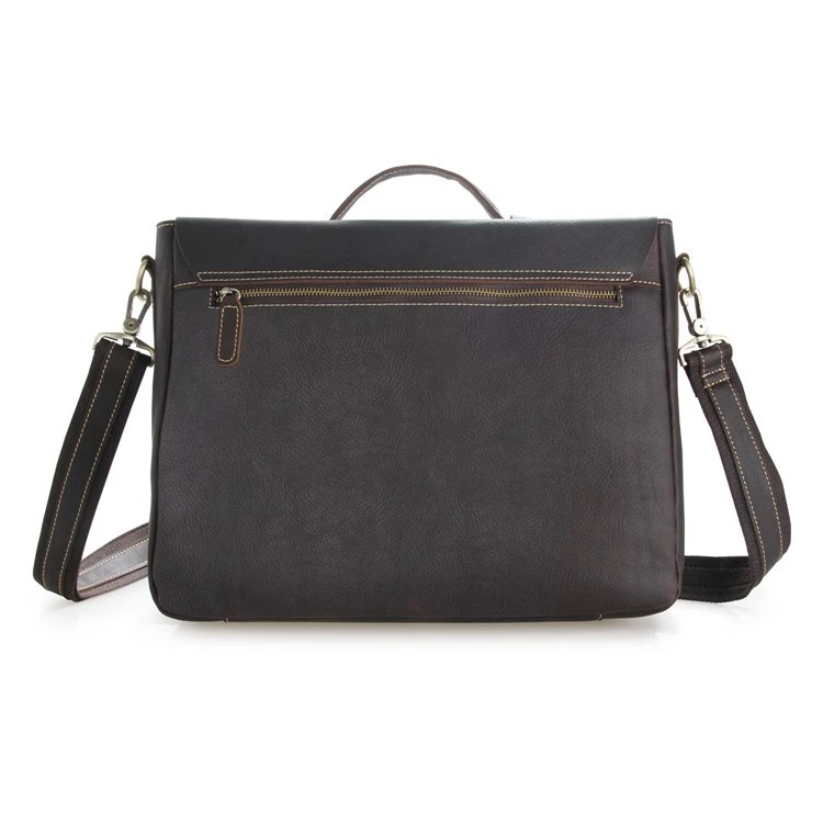 Présente une pochette arrière zippée et plusieurs compartiments intérieurs qui se referme à l’aide de boutons et d’une languette de cuir. Assurez-vous que votre téléphone, votre ordinateur portable et vos documents soit rangés exactement où vous voulez qu’iles le soient. Portez-le avec la poignée ou encore à l’épaule à l’aide de la bandoulière ajustable et amovible.