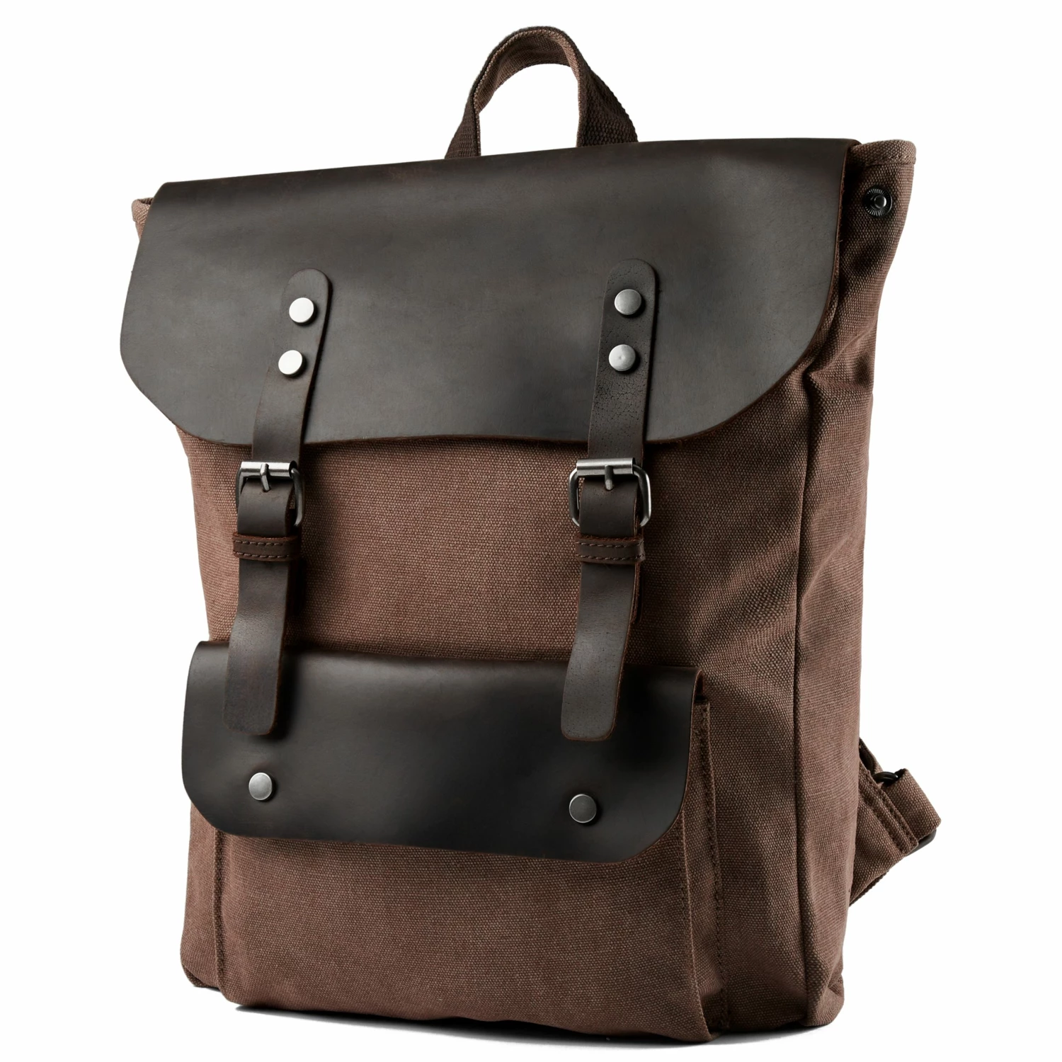 Voici un sac à dos bi-matière en toile très résistante et cuir de vachette.