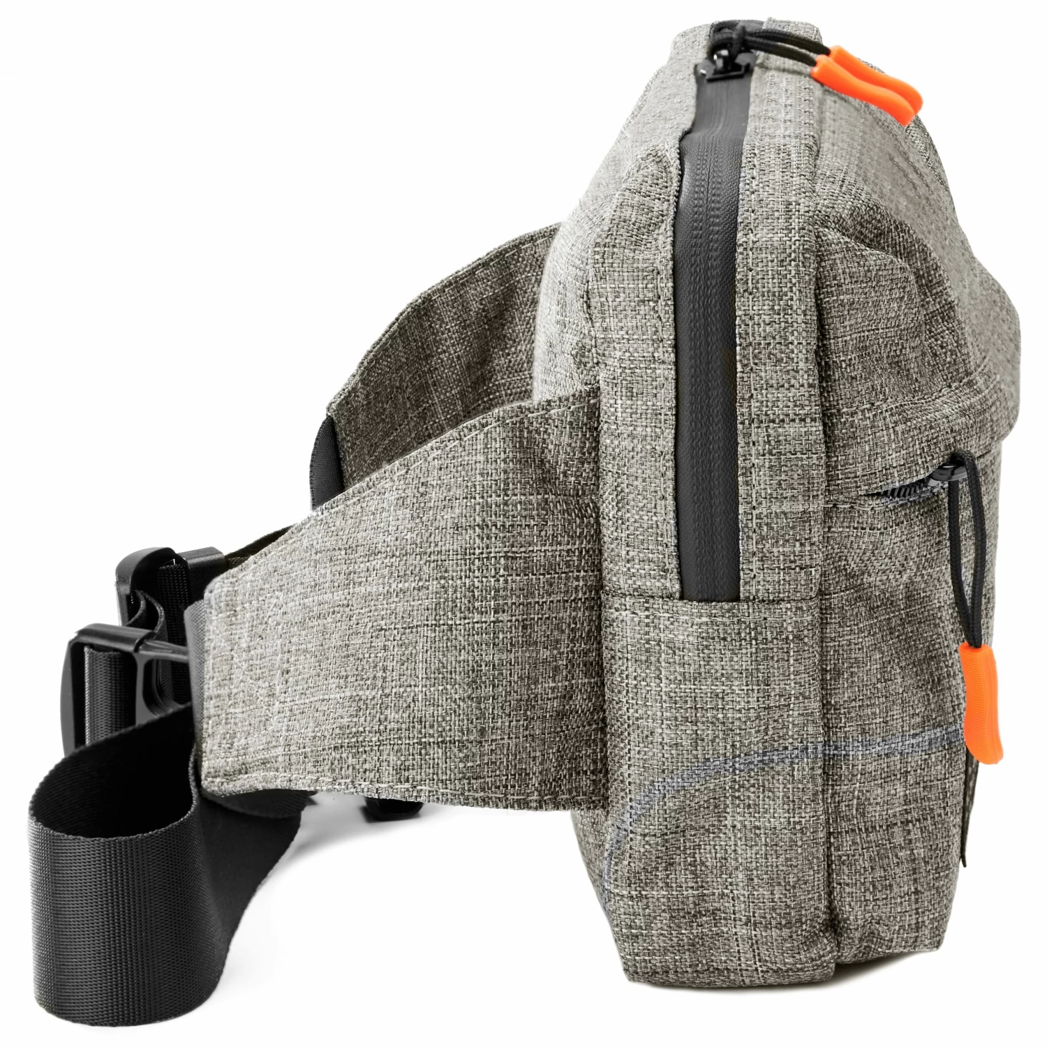 La sangle ajustable à boucle dont est équipée ce sac vous permettra de le porter au corps ou autour de la taille.