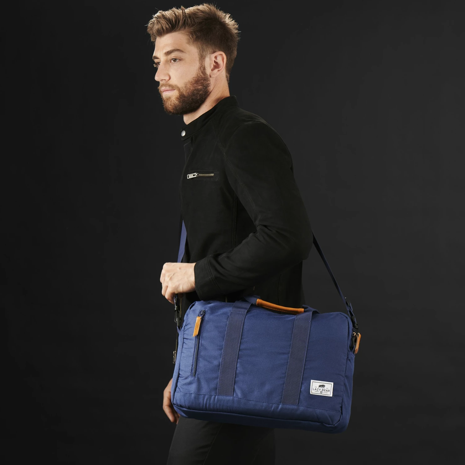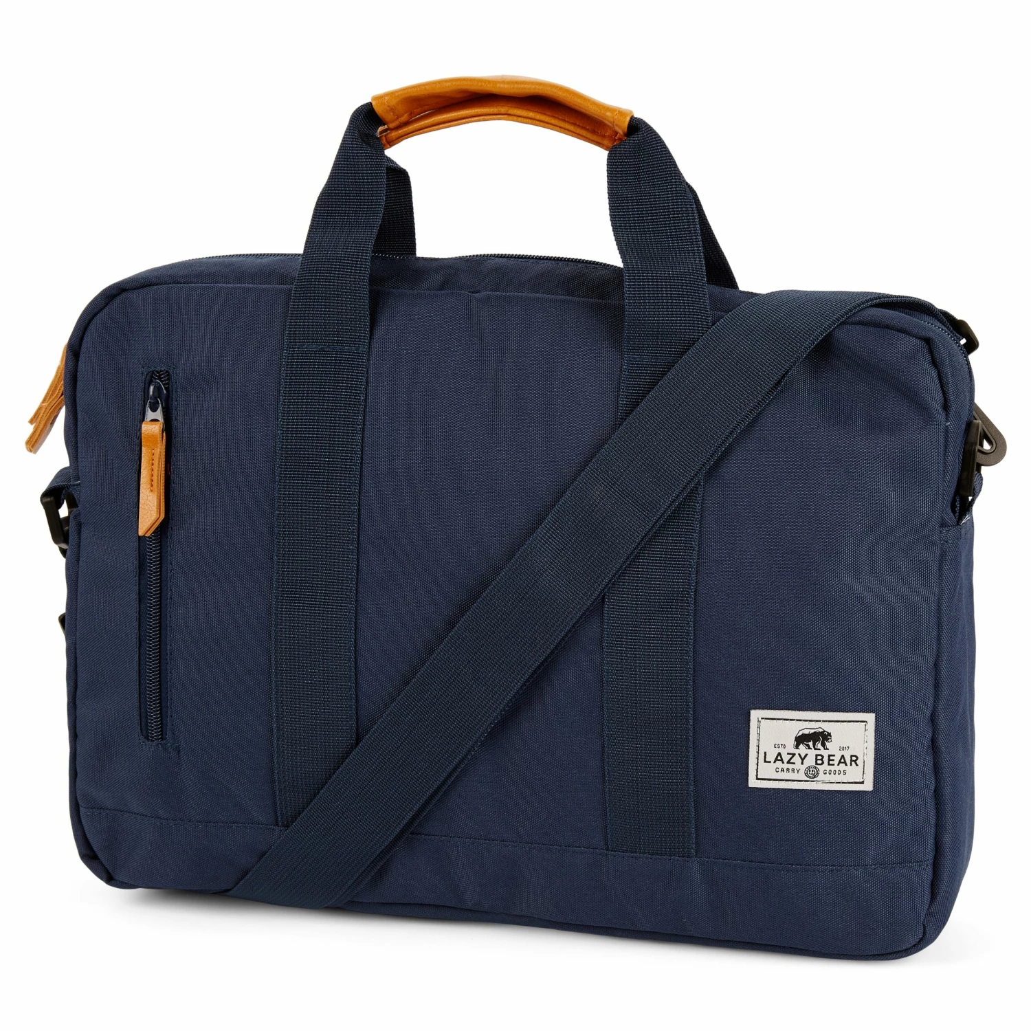 Confectionné dans une toile marine très robuste et décoré de finitions en similicuir, ce sac pour ordinateur portable de style moderne vous permettra de transporter vos accessoires essentiels de manière sobre et minimaliste.