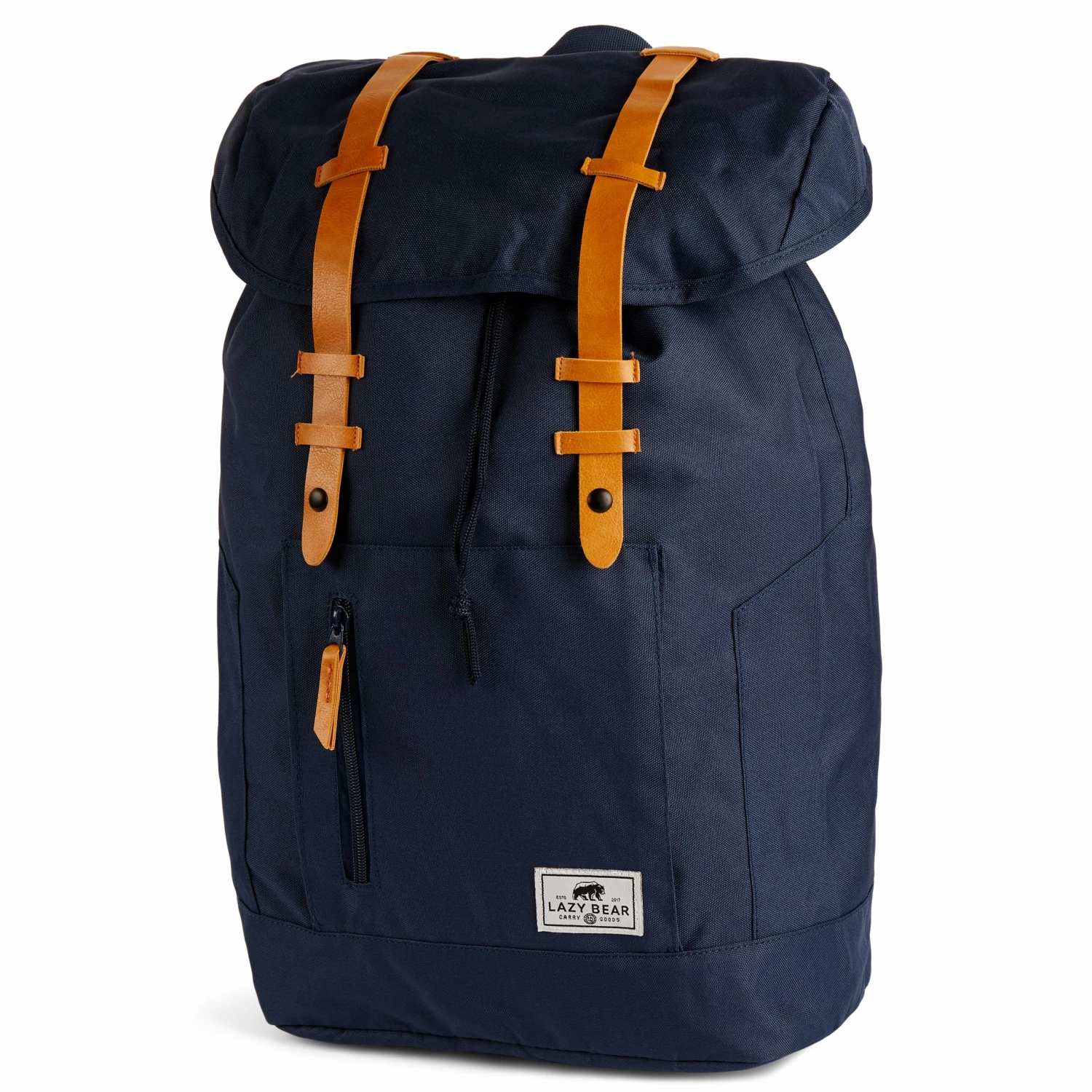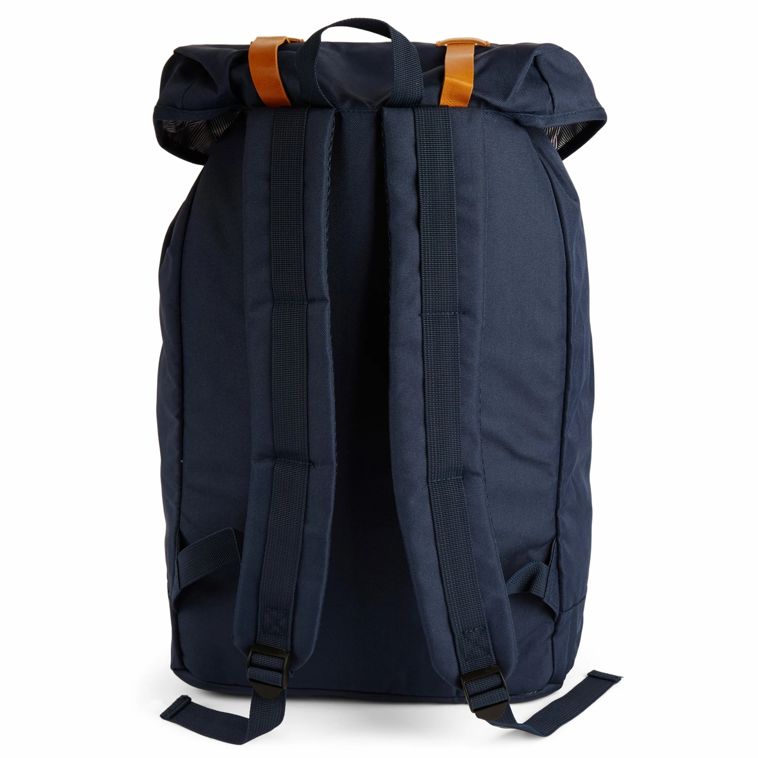 Ce sac à dos bleu bleu marine est équipé de bretelles en similicuir beige qui lui procurent un look et un feeling rétro. Il se referme en toute sécurité au moyen de fermoirs à mousquetons. Son compartiment central est doublé de tissu coloré qui lui procure une finition très élégante.