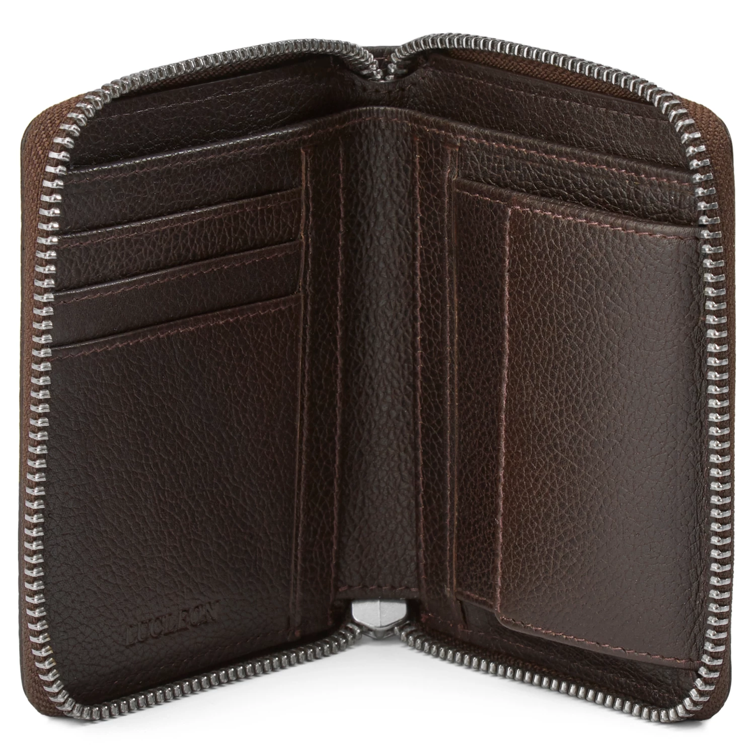 Dézippez ce portefeuille pour dévoiler de l’espace pour les cartes, les billets et les pièces. Utilisez les emplacements de carte désignés pour ranger vos cartes de crédit et vos cartes bancaires, et gardez vos billets dans la plus grande poche. Les reçus et les cartes supplémentaires se rangent parfaitement dans les quatre poches supplémentaires. Les pièces de monnaie restent bien en place dans la pochette à bouton-pression.