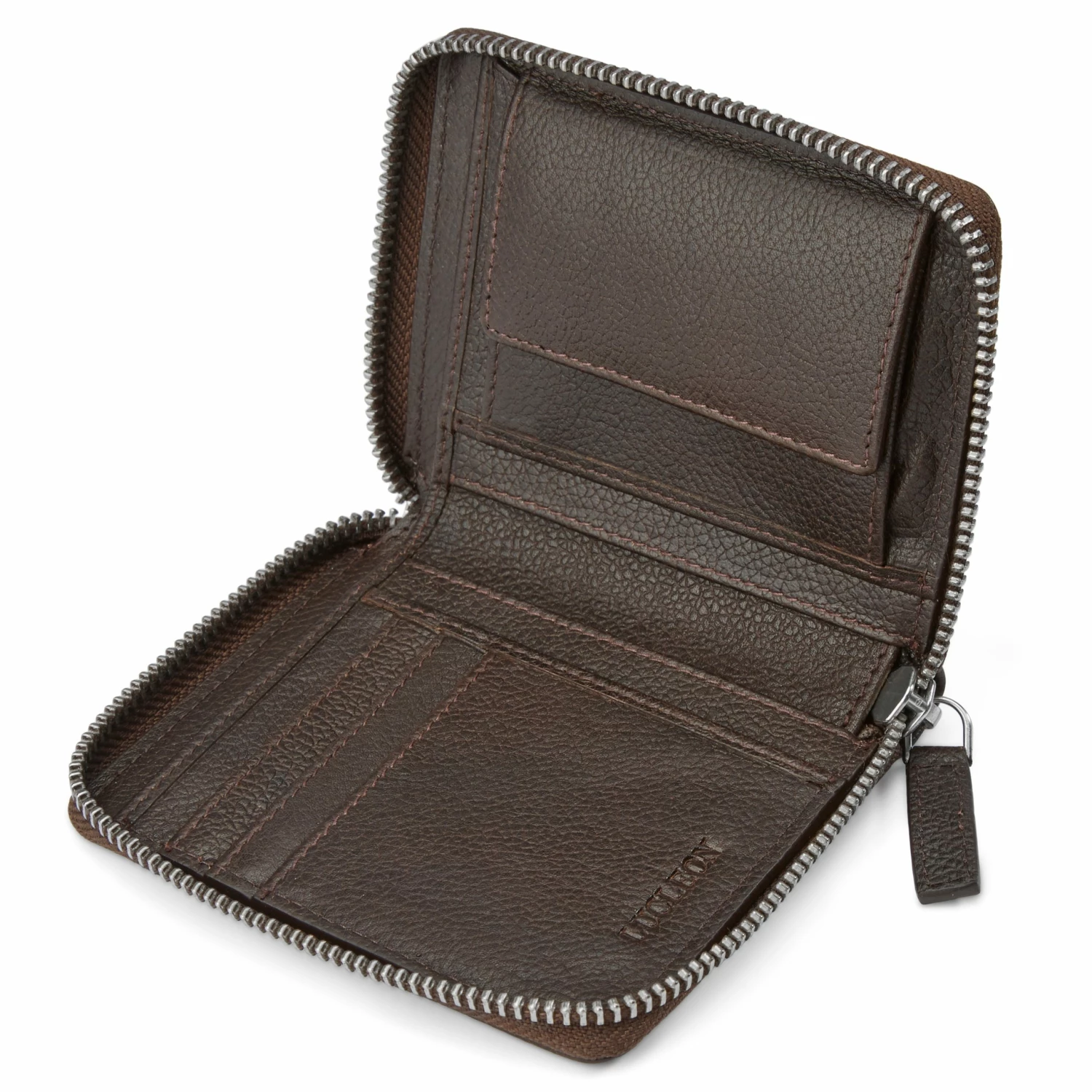 Fabriqué dans un cuir brun foncé avec une finition grainé, ce portefeuille conçu au Danemark est emballé et livré dans une boîte cadeau.
