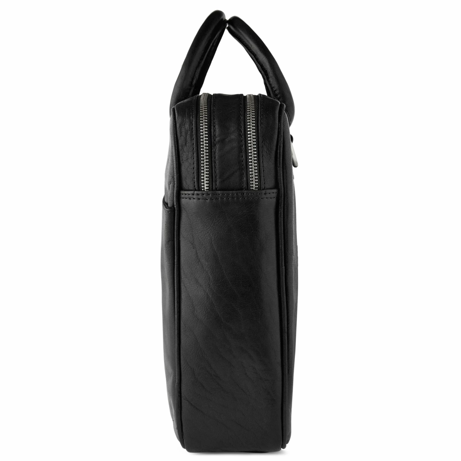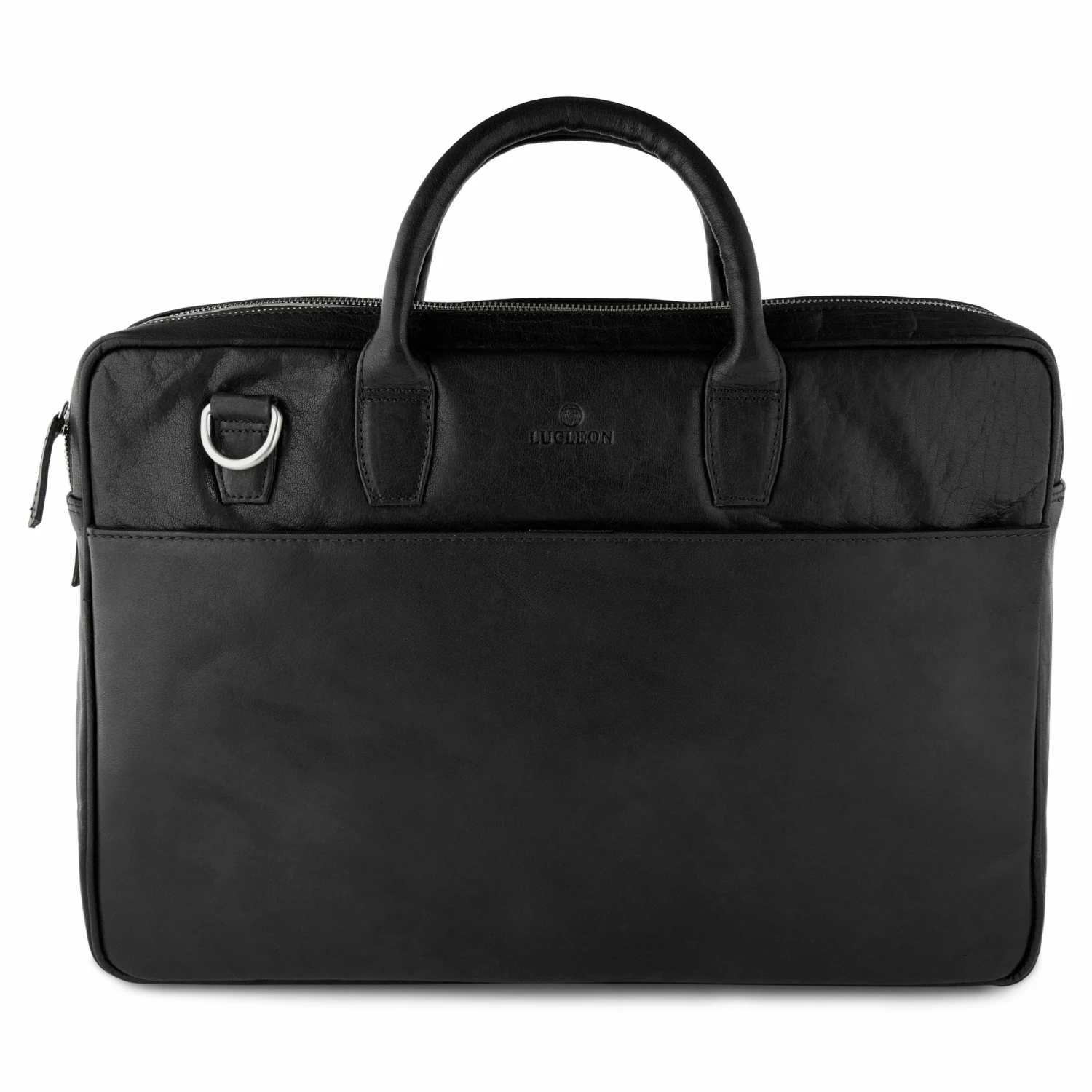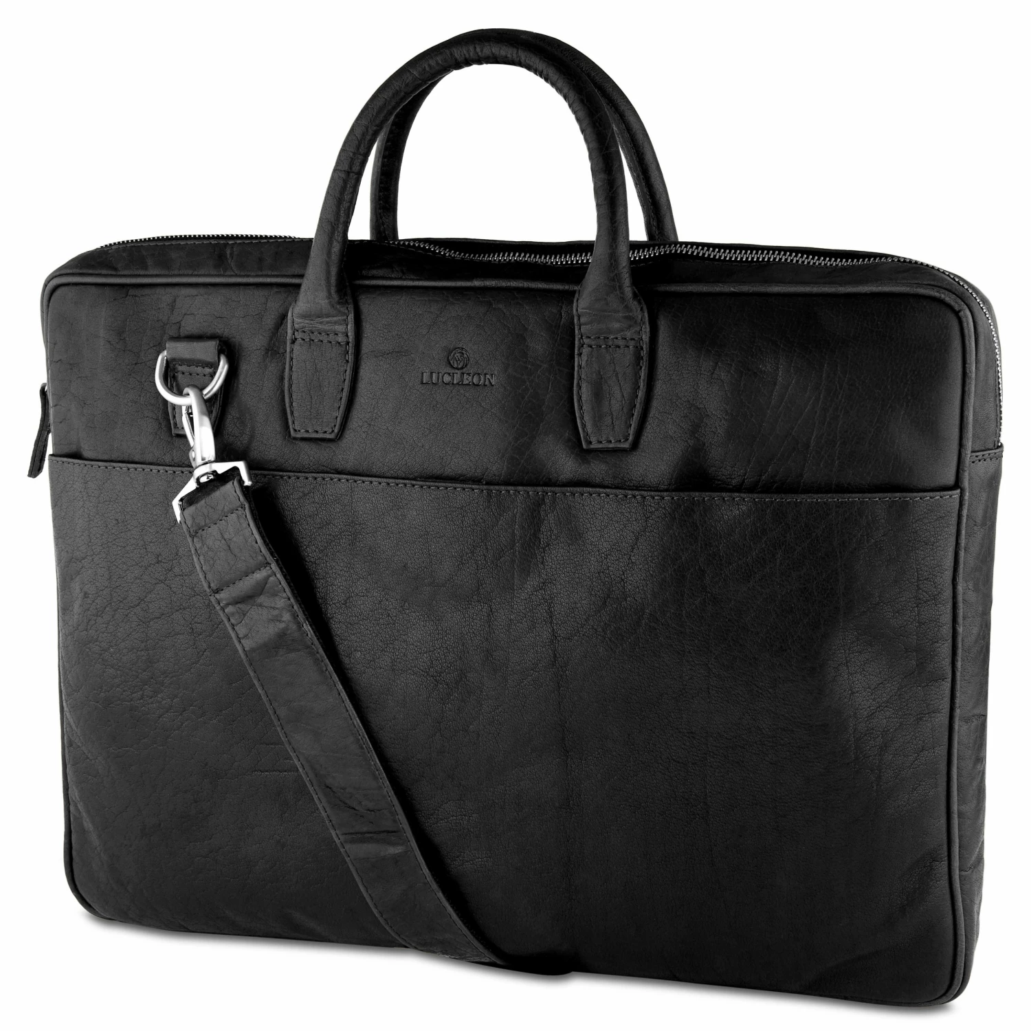 L’extérieur dispose d’une grande poche, de deux poignées rembourrées et d’une bandoulière réglable et amovible. Fabriqué en cuir de buffle durable qui s’embellira avec le temps.