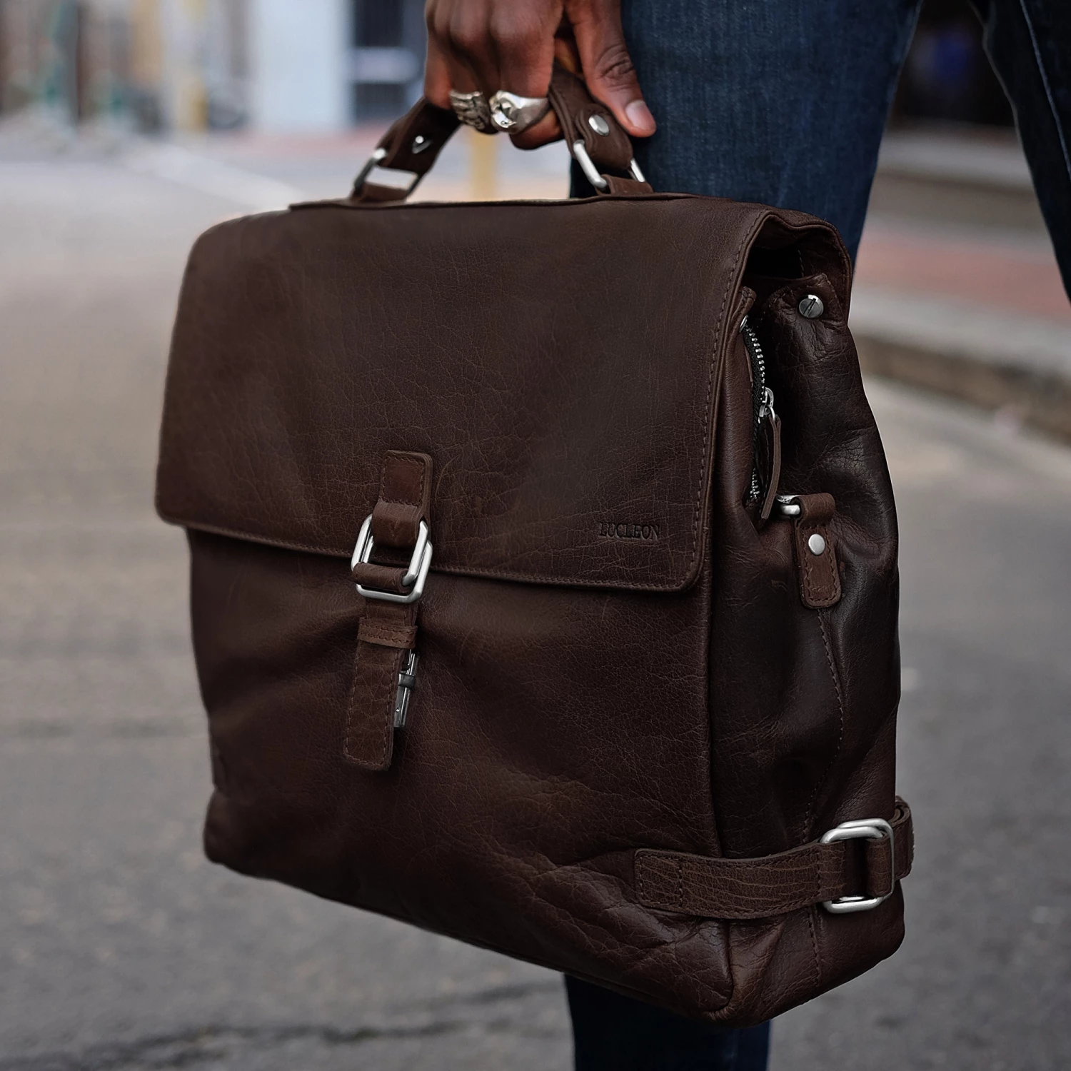 Une magnifique sacoche en cuir idéale pour tout gentleman moderne. Fabriquée en cuir de buffle de qualité et pièces en métal pour un accessoire chic et solide. Vient avec des poignées et une bandoulière réglable et détachable si vous préférez le porter à l’épaule.