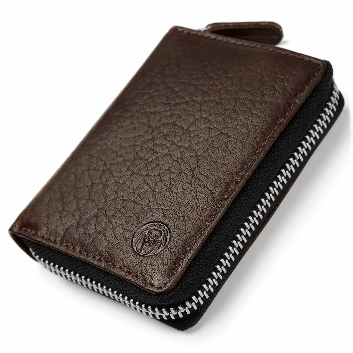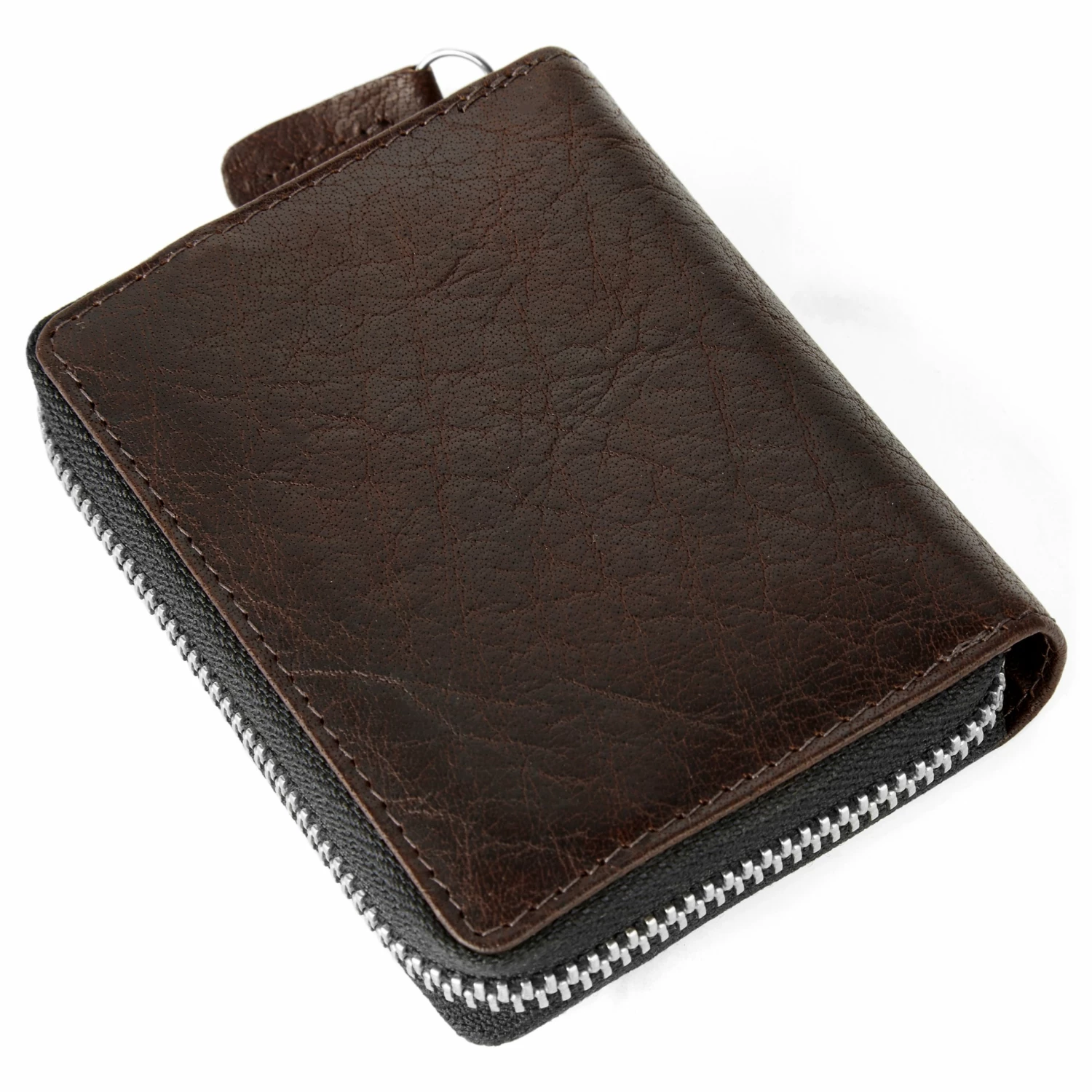 Confectionné en cuir de buffle de haute qualité, ce porte-cartes brun foncé à la texture unique gagnera en beauté au fil du temps qui passe. Il pourra accueillir jusqu’à 10 cartes de crédit, réparties dans 10 pochettes séparées.