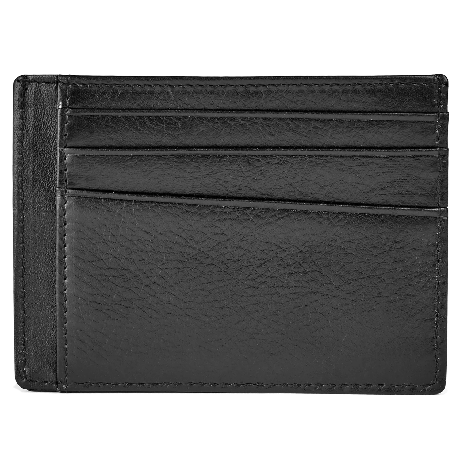 Ce porte-cartes double face en cuir noir luxueux dispose de six fentes pour cartes de crédit ainsi que de trois emplacements supplémentaires dans lesquels vous pourrez ranger votre pièce d’identité, vos billets de banque, etc.