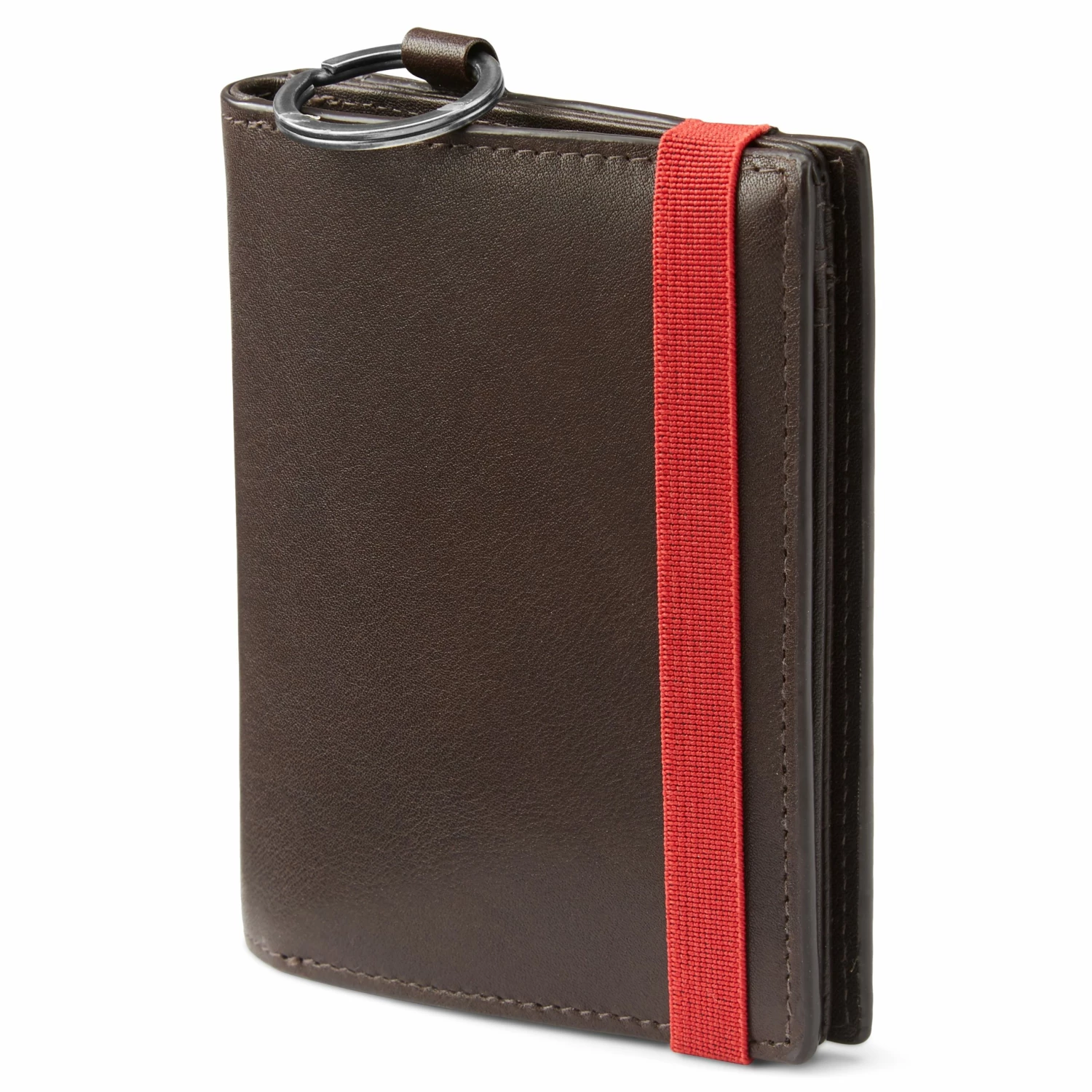 Il s’agit d’un portefeuille dans lequel chaque détail a sa raison d’être – du trousseau de clés à la doublure qui bloque la technologie de balayage RFID. L’élastique rouge quant à lui, sert à garder le portefeuille fermé lorsque vous utilisez vos clés.