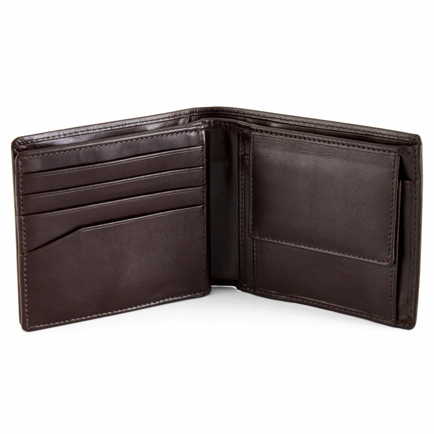 Il dispose de 8 emplacements pour cartes et de deux compartiments à billets. Chaque compartiment peut accueillir deux cartes. Vous y trouverez également un porte-monnaie à bouton-pression et une fenêtre photo.