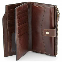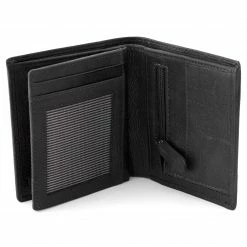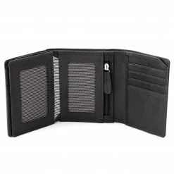 À l’intérieur, vous trouverez douze emplacements pour vos cartes de crédit, ainsi que deux emplacements dédiés pour vos cartes d’identité. Ce portefeuille contient aussi un porte-monnaie intégré, ainsi que deux compartiments pour les billets et les reçus.
