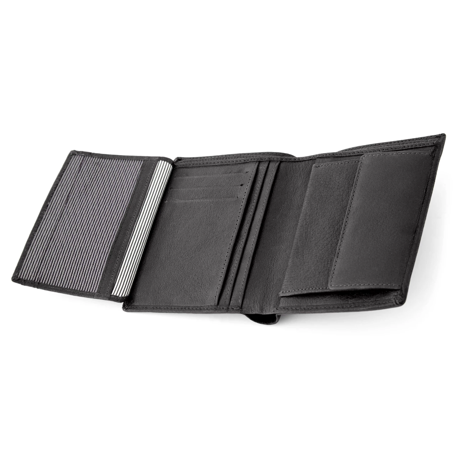 Vous pouvez confortablement stocker jusqu’à deux cartes dans chacune des fentes pour carte, ainsi que votre carte d’identité, de l’argent (il possède 2 compartiments pour billets) et des pièces de monnaie dans la poche pour pièces. Pour résumer, en plus d’avoir un magnifique design fin, le portefeuille est également très pratique.