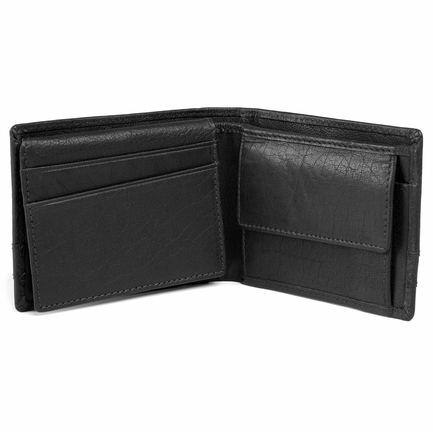 Un portefeuille élégant, en véritable cuir de buffle naturel, de couleur noir mat et légèrement patiné. La collection Montréal est confectionnée à partir de cuir de buffle traité selon une technique permettant de respecter la beauté naturelle du cuir. Ce portefeuille est équipé d’une protection RFID intégrée qui vous pour protégera contre le vol de données.