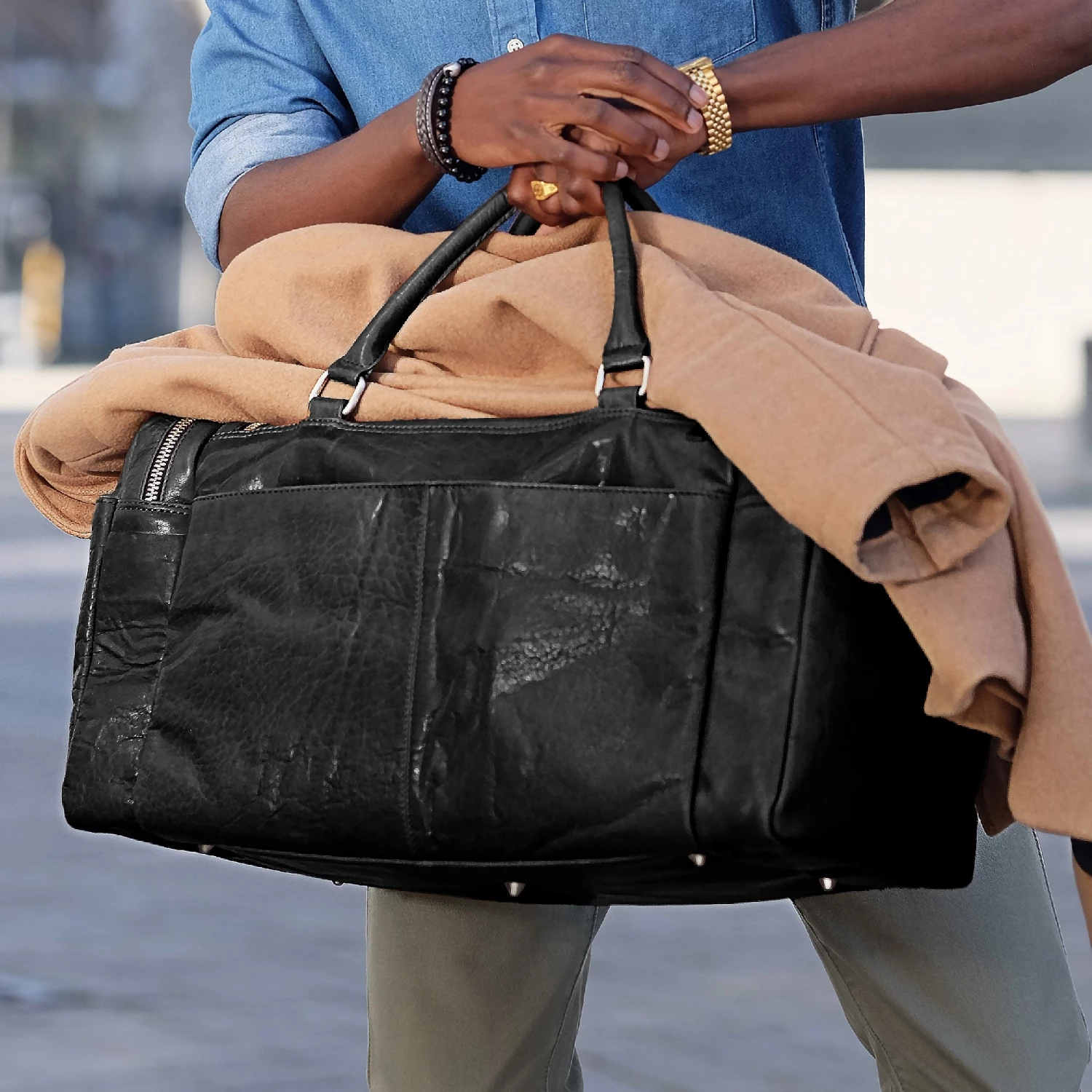Un sac de voyage en cuir premium, confectionné en cuir de buffle tanné naturellement afin de faire ressortir la beauté rustique et vintage de son grain naturel.