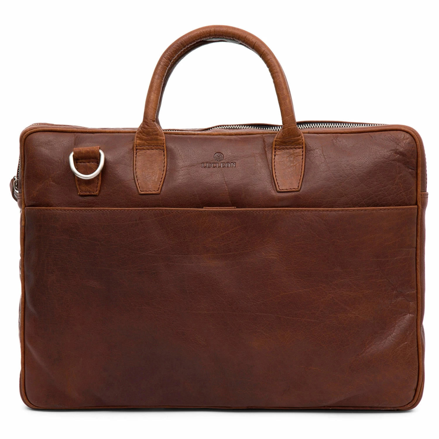 Il est équipé de poignées de transport en cuir très doux et d’une bandoulière amovible réglable en longueur. Sa profonde poche disposée sur sa face avant vous permettra d’accéder rapidement aux accessoires que vous désirerez y ranger. Son compartiment central, doublé de coton, pourra accueillir un ordinateur portable (grâce à un système d’attache sécurisé), mais il est également pourvu de 4 petites poches de rangement, de 2 porte-stylos et de 4 pochettes pour vos cartes de crédit, chacune d’entre elles pouvant accueillir 2 cartes.