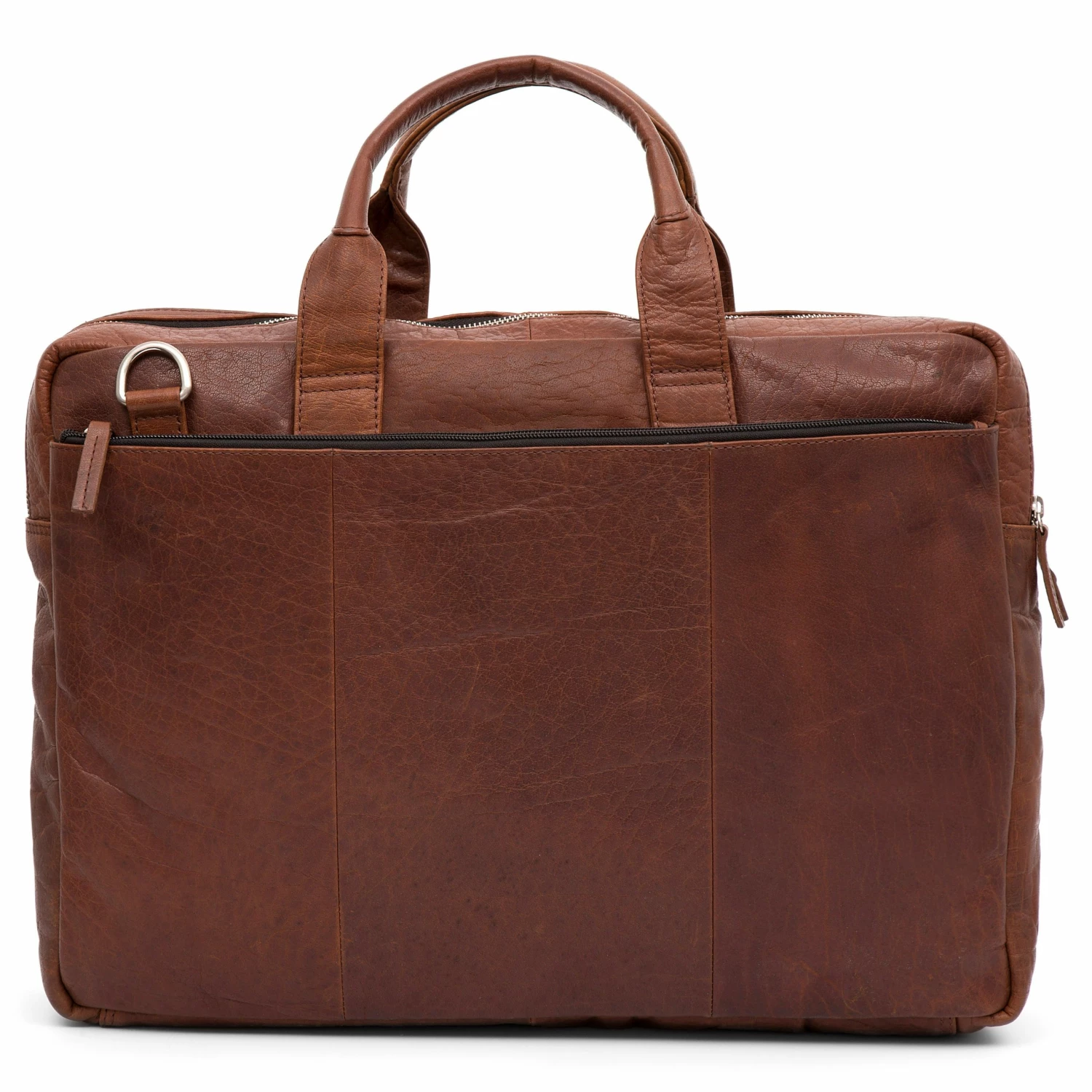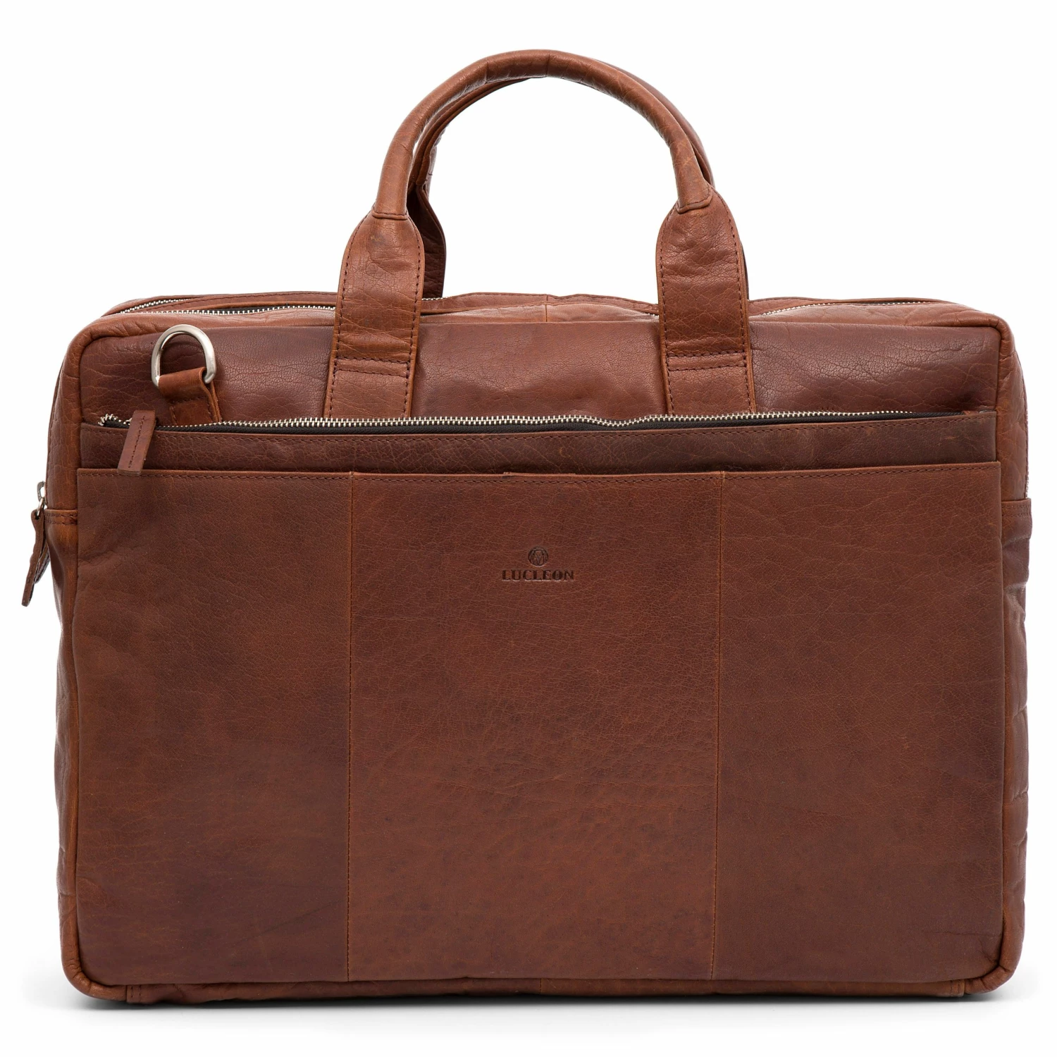 Une mallette en cuir élégante et de grande taille qui pourra confortablement accueillir votre ordinateur portable de 17”. Confectionnée en véritable cuir de buffle, ce cuir a été traité afin de mettre en valeur la beauté naturelle de son grain et serti de finitions métallique qui en font un accessoire de haute qualité des pieds à la tête.