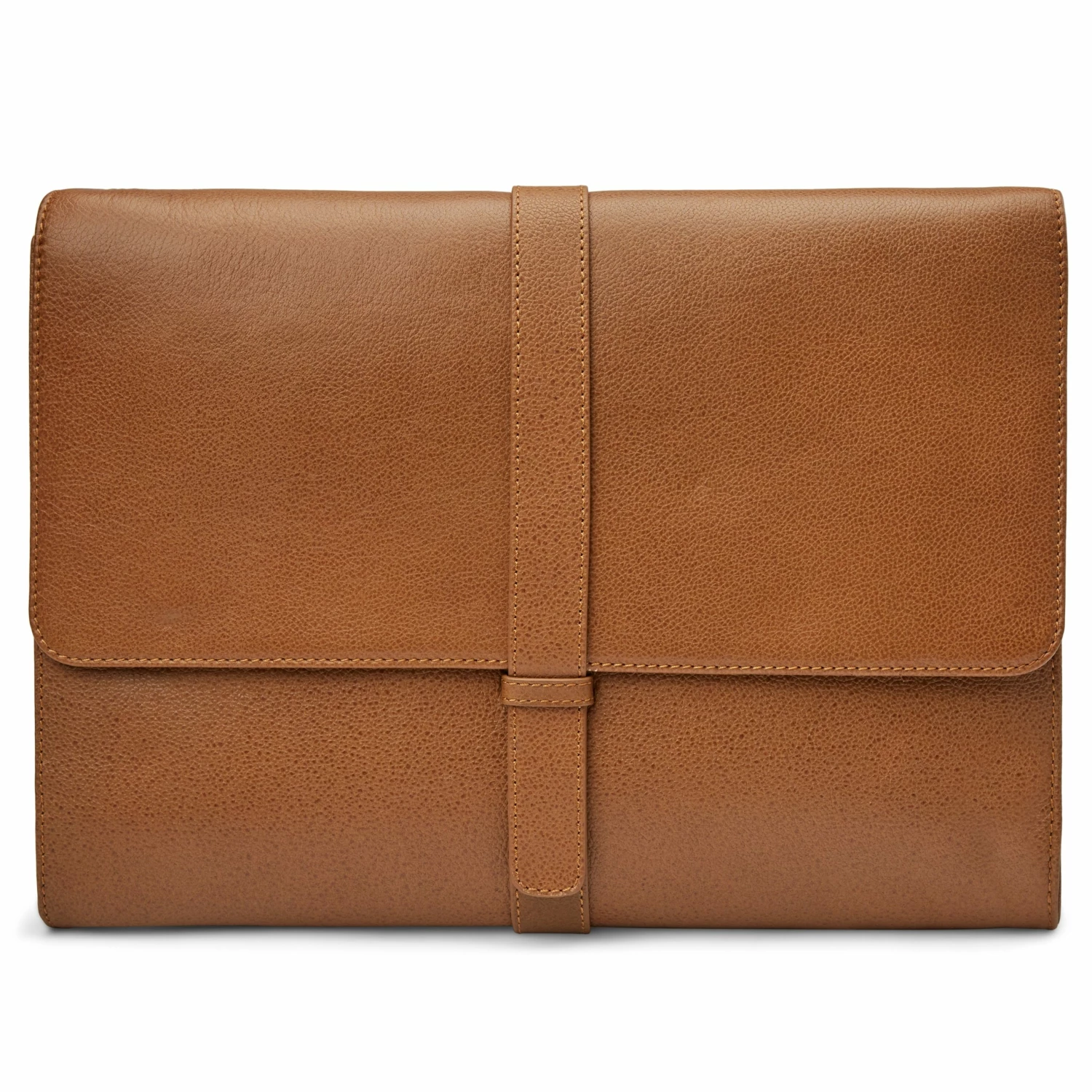 Fabriqué à partir de cuir résistant, cet étui de couleur brun est rembourré pour protéger votre ordinateur portable pendant vos déplacements et offre une protection RFID pour protéger vos cartes et vos données personnelles du vol électronique.