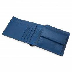 Lucleon Portefeuille et porte-cartes Lincoln en cuir bleu marine et bleu cobalt anti-RFID