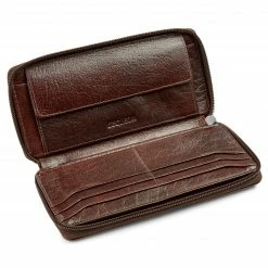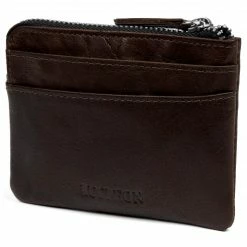 Lucleon Porte-monnaie Montreal zippé en cuir marron foncé anti RFID